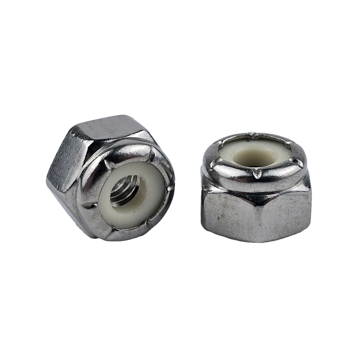 These nuts are made of high-quality 18-8 (also known as 304 or A2) stainless steel for corrosion resistance. The nylon insert grips the screw to prevent loosening from moderate vibration without damaging threads. Nylon insert locknuts are reusable a couple of times, however the nylon's holding power degrades with each use.