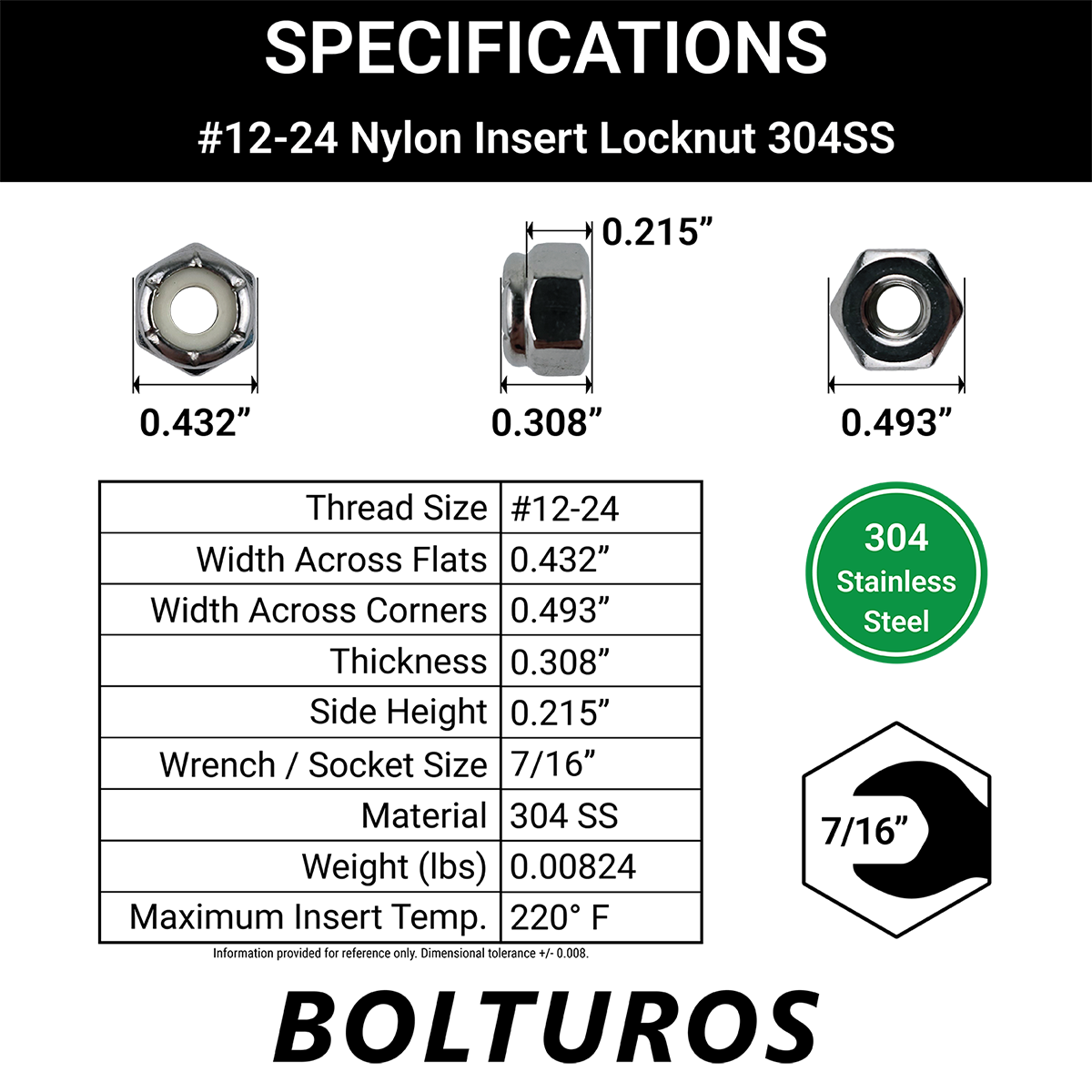 #12-24 Nylon Insert Lock Nuts by Bolturos