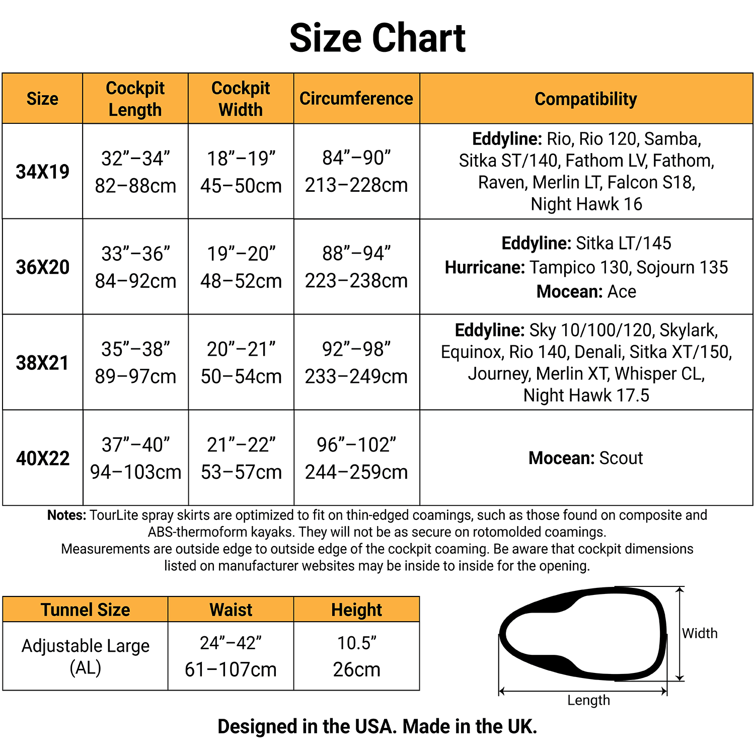 - Waterproof - TourLite spray skirts are fully seam-taped to keep water out of your kayak. They’re also fast-drying if you do wet exit.